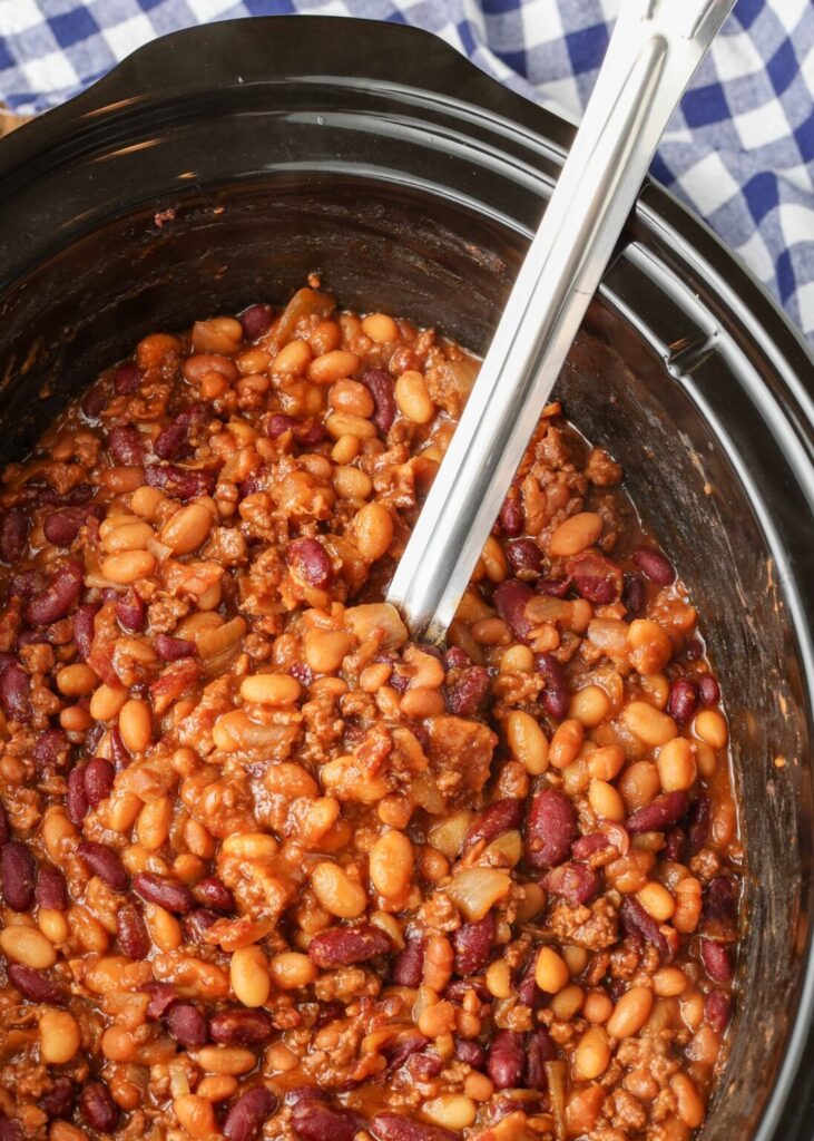 Baked beans are just one of those sides that are non-negotiable for the 4th of July. It is always on the table and for good reason. This baked beans recipe is made in a slow cooker. Which is great because you can dump all the ingredients and go. The slow cooker will do everything for you.