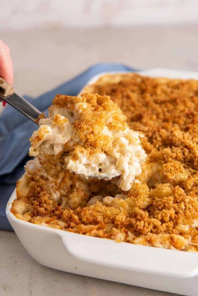 How amazing does this mac and cheese look? I’m telling you, once you try this recipe, you will be craving it every day. Yes, it is that good! It has three different types of cheeses and is topped with some crunchy breadcrumbs.
