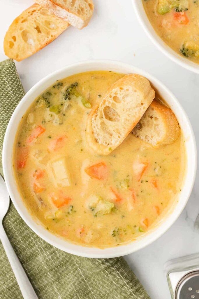 One bite of this delicious and creamy soup and you’ll want to marry whoever made it, haha! It really is that good! It’s made with lots of chicken, healthy veggies, and a tasty cream sauce.