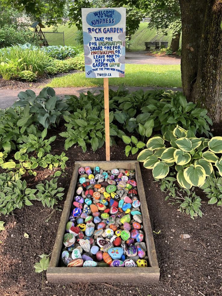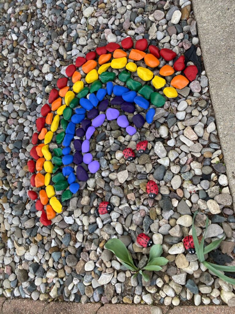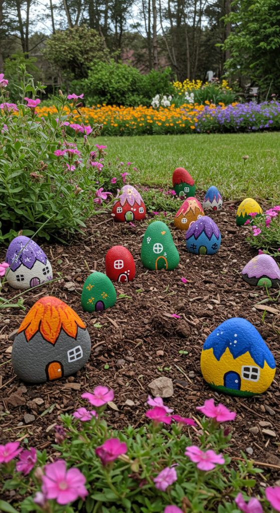 You can look around for big rocks in your yard, or if you can’t find any, you can buy them. Make sure to use waterproof paint for the rocks so that when it rains, it doesn’t wash out.
