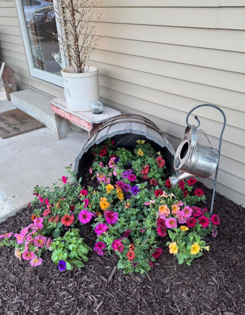 If you want a stunning flower planter that is certain to grab everyone’s attention with no effort, this is for you. This just looks like the bucket fell over, and no one has bothered to pick it up.