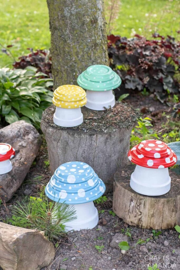 These DIY mushrooms are the perfect addition to your garden. They are a great way to add a pop of color. You’ll need some terra cotta pots, some bowls, and, of course, acrylic paint.