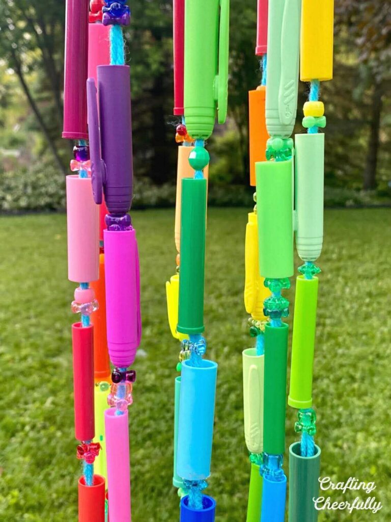 Do you have a bunch of old markers that are all dried out? If so, instead of throwing them out, make stunning wind chimes out of them instead.