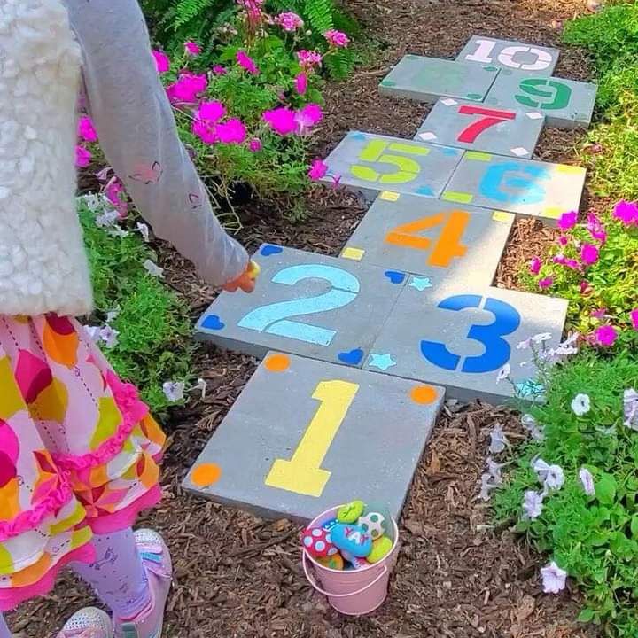 Label each of the stones with numbers. When you are working out in your garden, and the kids just won’t leave you alone, this DIY hopscotch will come in handy.