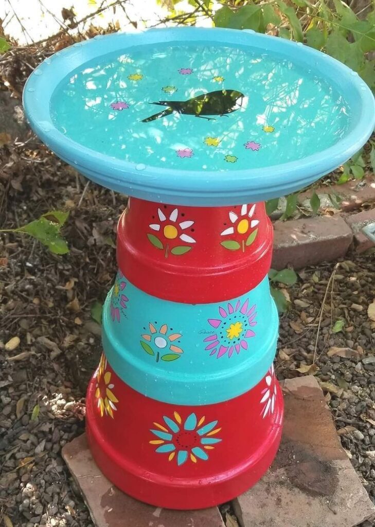 Hot glue them to one another and attach a small bowl on top filled with water for a beautiful birdbath that is not only a great addition to your garden, but you’re also helping out your fellow birdies, lol!