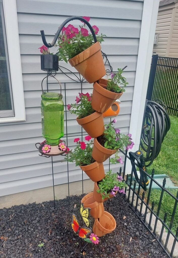 I am obsessed with this idea. The Stacked clay pots with flowers are absolutely gorgeous. You will need lots of clay pots and flowers for this DIY, but it is going to be worth the effort.
