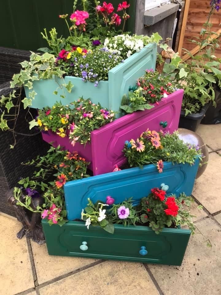 Are you planning on throwing out cabinets or nightstands with drawers? If so, instead of throwing them out, get creative and turn them into flower planters.