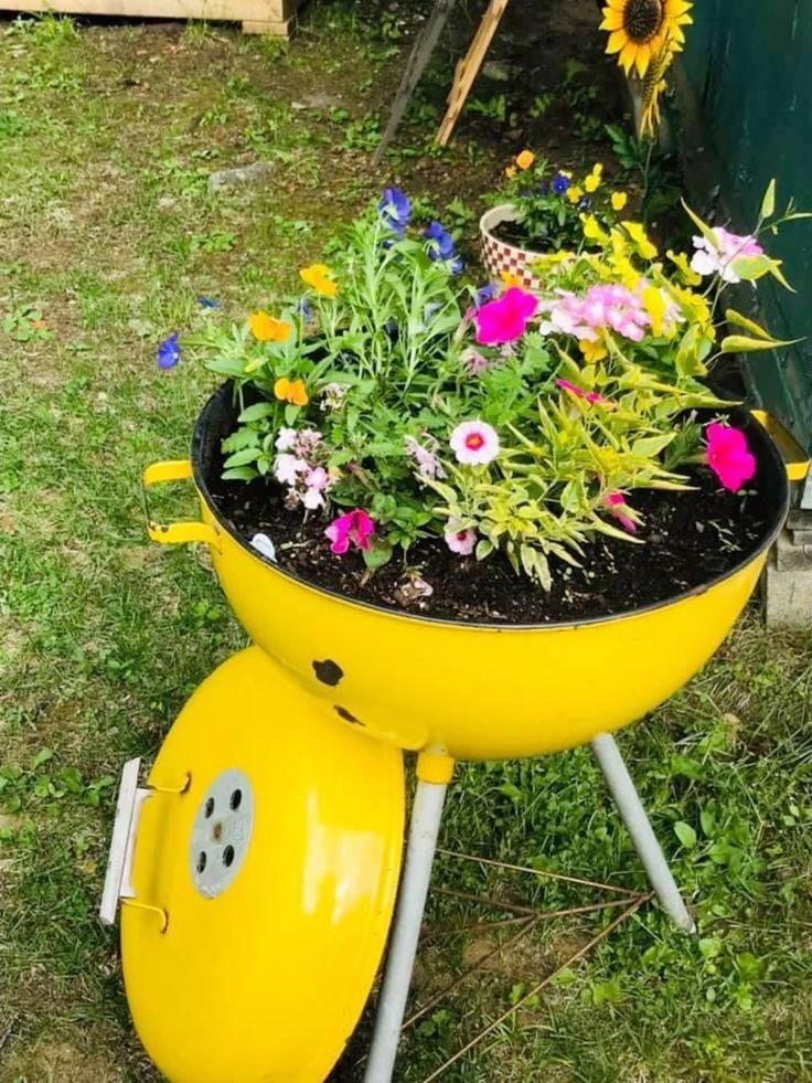 Got an old grill that stopped working? Instead of throwing it out, reuse it and turn it into a stunning flower planter. It’ll be even more eye-catching if your grill is a bright color like yellow or blue.