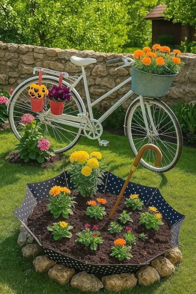 Who says an umbrella can’t make a gorgeous flower planter? I mean, just look at it. It is sure to garner lots of compliments.