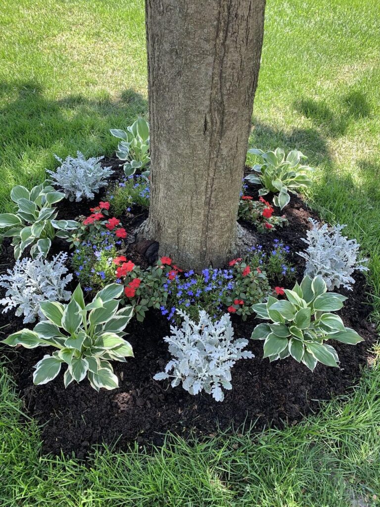 Spruce up your tree stump with lots of colorful flowers. Include sunflowers, lilies, roses, and tulips. You can recreate this idea for literally any tree around your house.