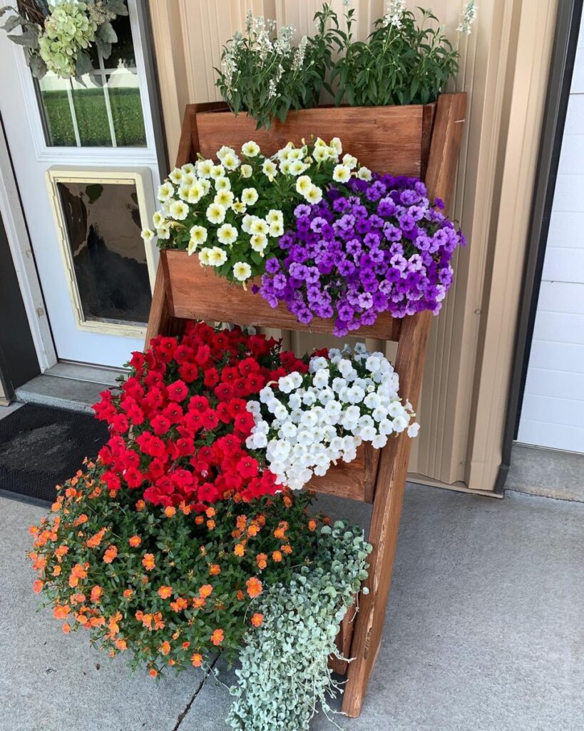 You can get the tiered vertical planter from Amazon, Kohl’s, or Target for super cheap. This is a great way to add some color to your porch for spring and summer.