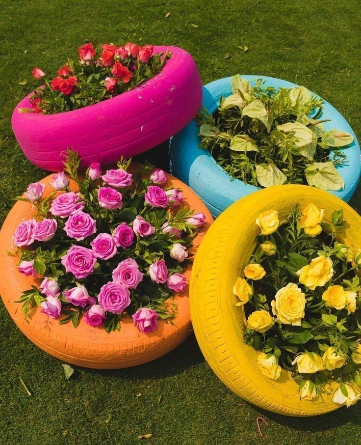 Summer is a time for all things colorful. Repurpose your old tires and turn them into stunning planters by painting them vibrant colors and adding some wood on the bottom to place your flower pot.