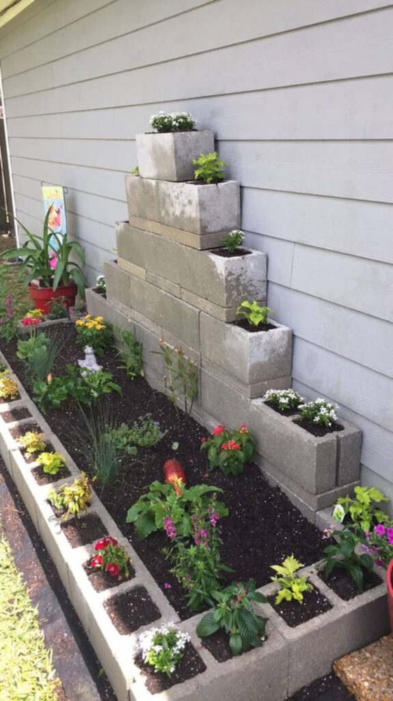This flower garden idea is a little bit on the pricey side. Mainly because of the concrete planters. They range from 30$ to over $100. But if you have the budget for it, go for it.