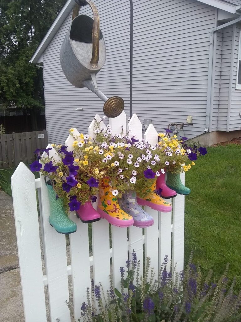 Have some old boots that don’t fit anymore or some pairs you don’t reach for as much? If so, repurpose them and use them as colorful little planters.