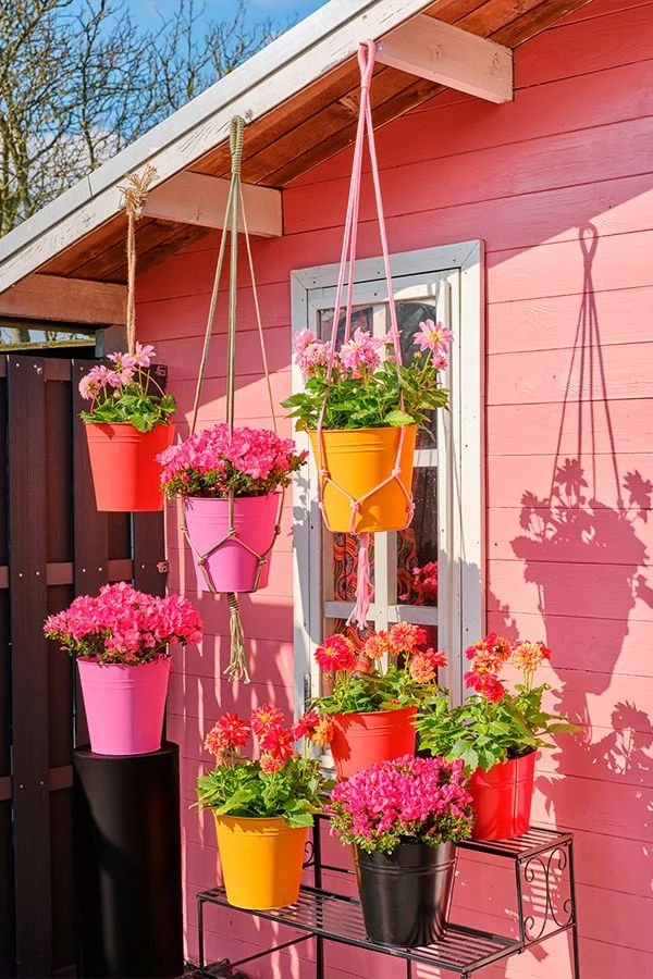 Don’t want to dig into the ground for your garden? No problem there! Plant your flowers in colorful flower pots. Then buy a tiered ladder shelf and place your flower pots there.