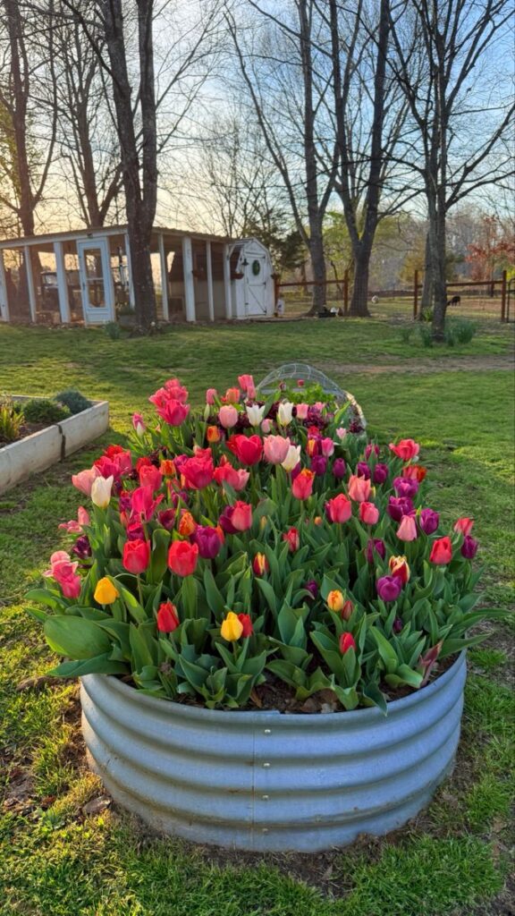 This is just gorgeous! Recreate this raised tulip bed for your backyard. You can plant different types of tulips and different colors for a stunning flower garden idea.