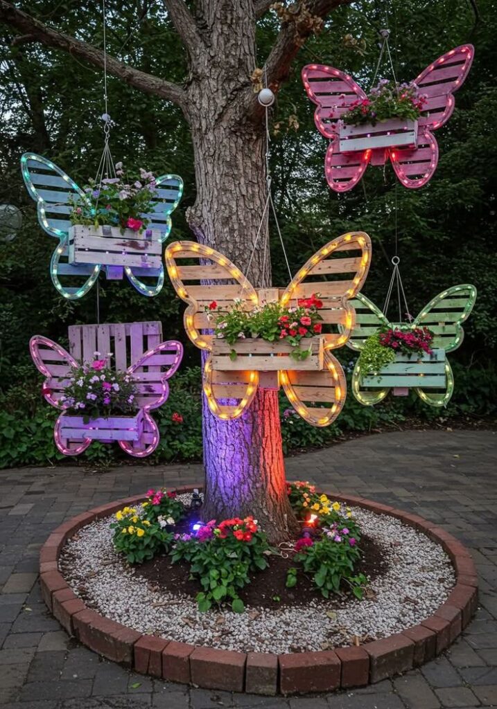 You can plant colorful flowers, incorporate mini decor, add little houses, and of course, some twinkle lights for the magical vibes.