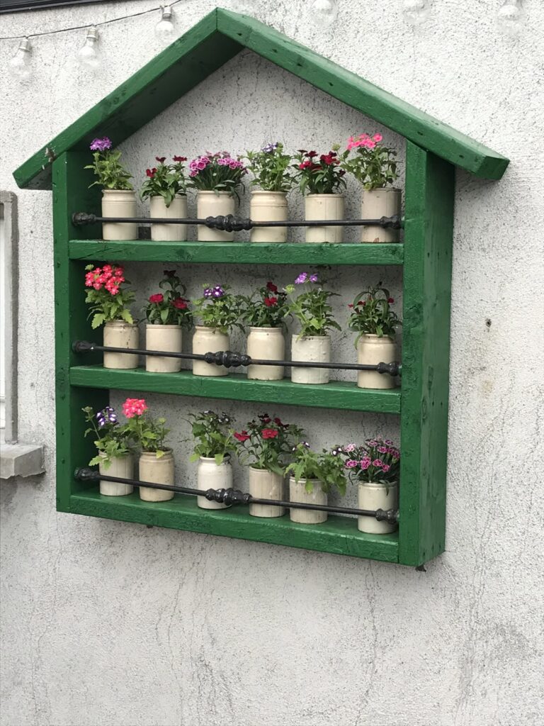 Add a bit of character to your outdoor walls with this stunning flower pot display.