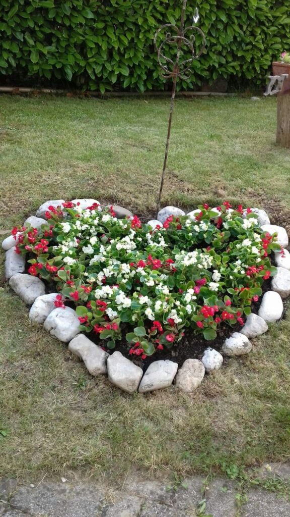 Get a little creative and recreate this gorgeous heart-shaped flower bed. You can get the rocks from Home Depot and just arrange them into a heart shape.