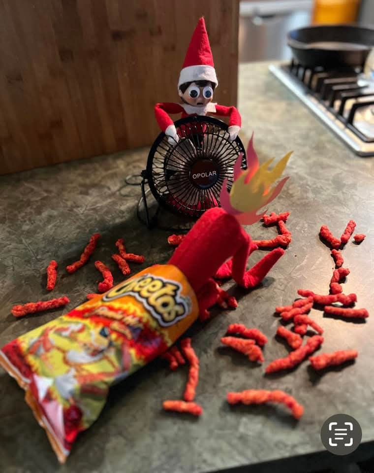 Looks like Elfie didn’t know how hot, hot Cheetos really are.