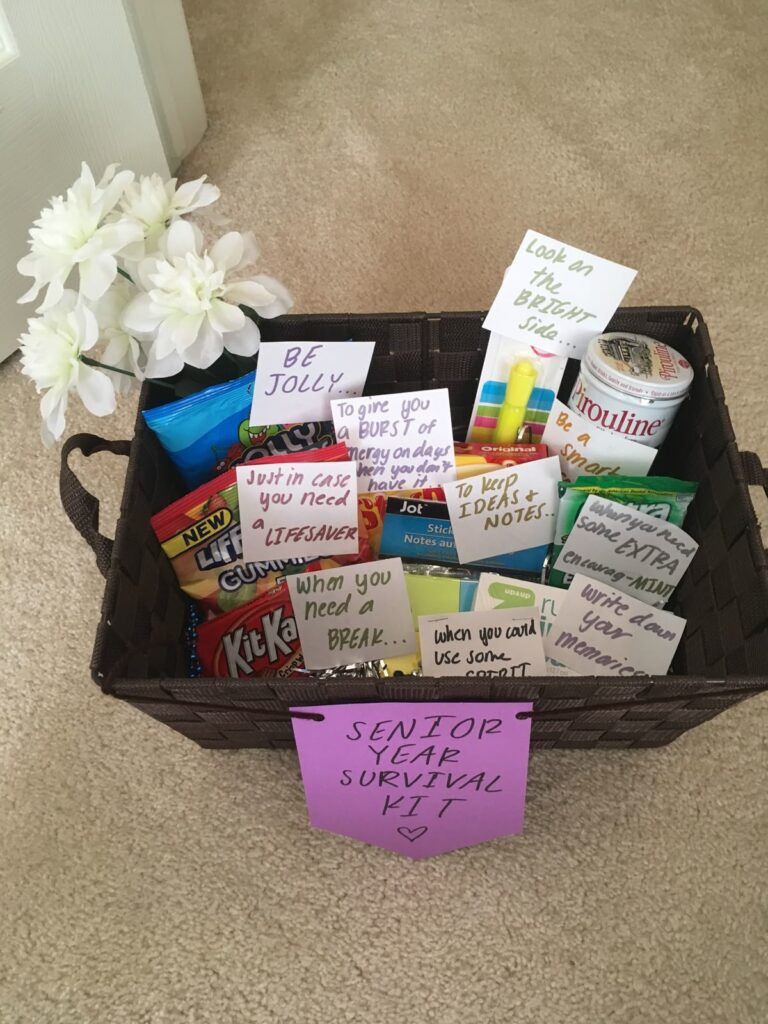 If your grad is heading off to college soon, they are going to need a survival kit, trust me. Include some snacks, sweets, drinks, and some medicine. You can write cute little notes on each item to make it extra special.