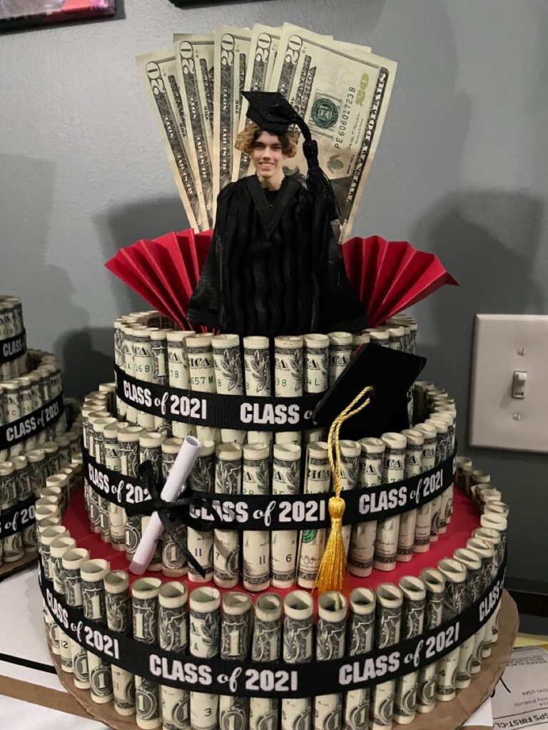 I promise you, every grad wants a money cake. This is perfect for literally any budget. You can use $1 dollar bills, $5 dollar bills, or even go up to $100 dollar bills.