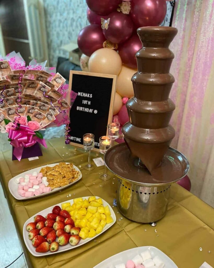 You can get the chocolate fountain from Amazon for super cheap. This idea is definitely going to be a hit at your party.