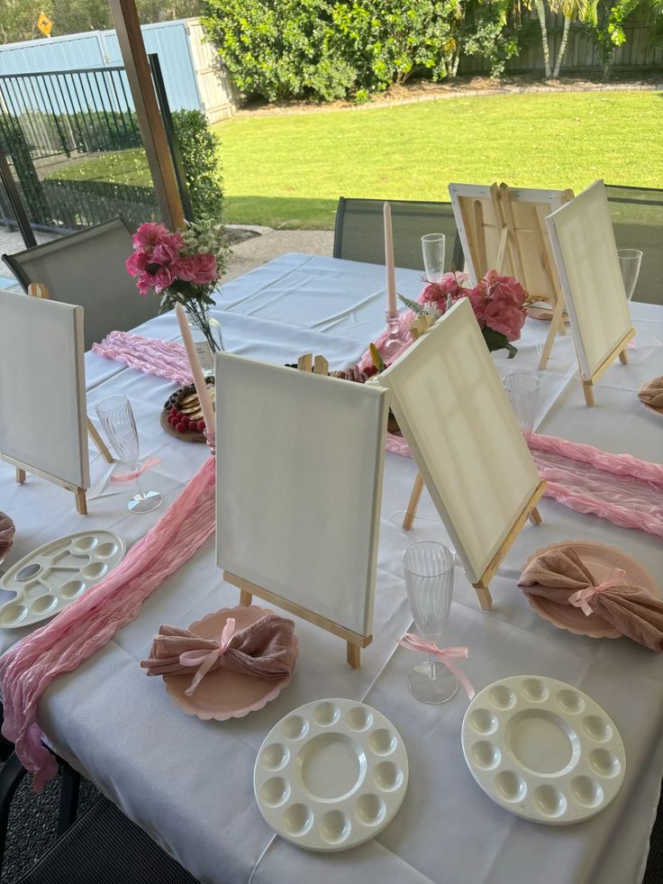 Last but definitely not least, we have this amazing sip and paint station where you and your friends can all sit down, sip on a drink, and paint.