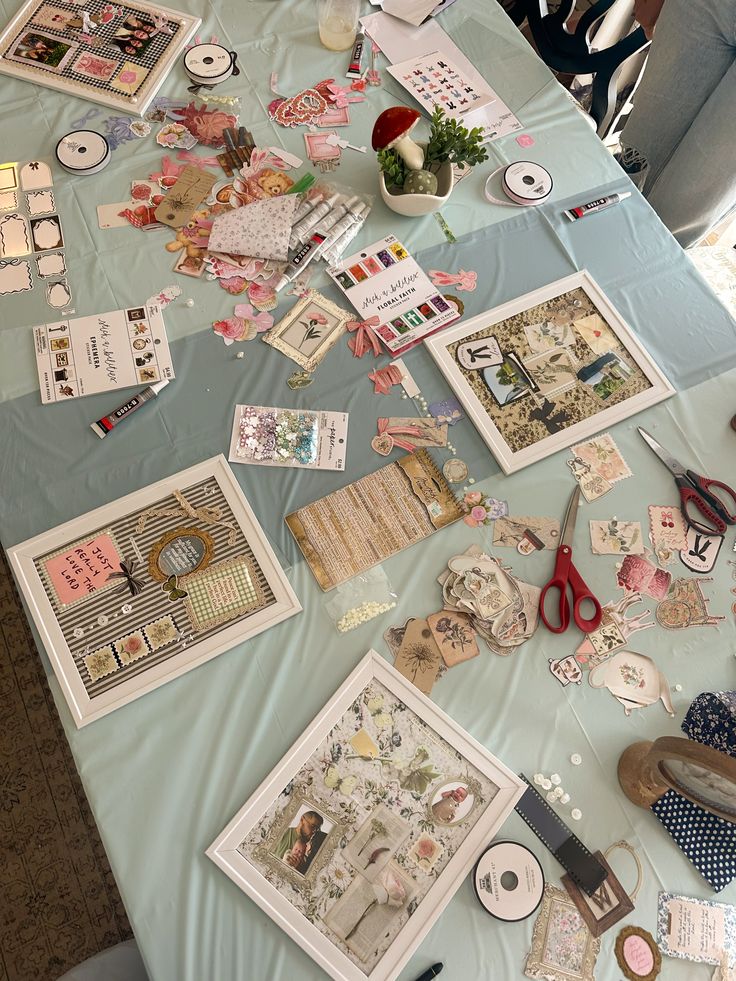 Create a scrapbooking table with all the supplies you need, along with picture frames. You can chat with your friends and scrapbook all day long.