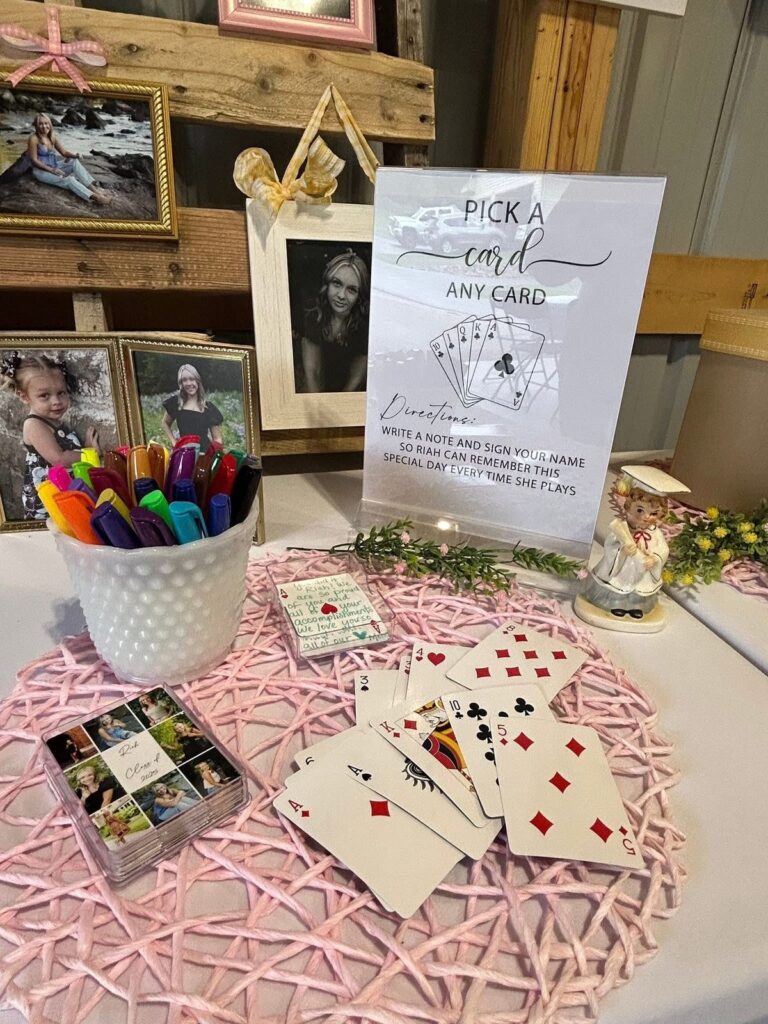 If you’re big into playing cards, create a little station where guests can sign their names on the cards and write down a cute note.
