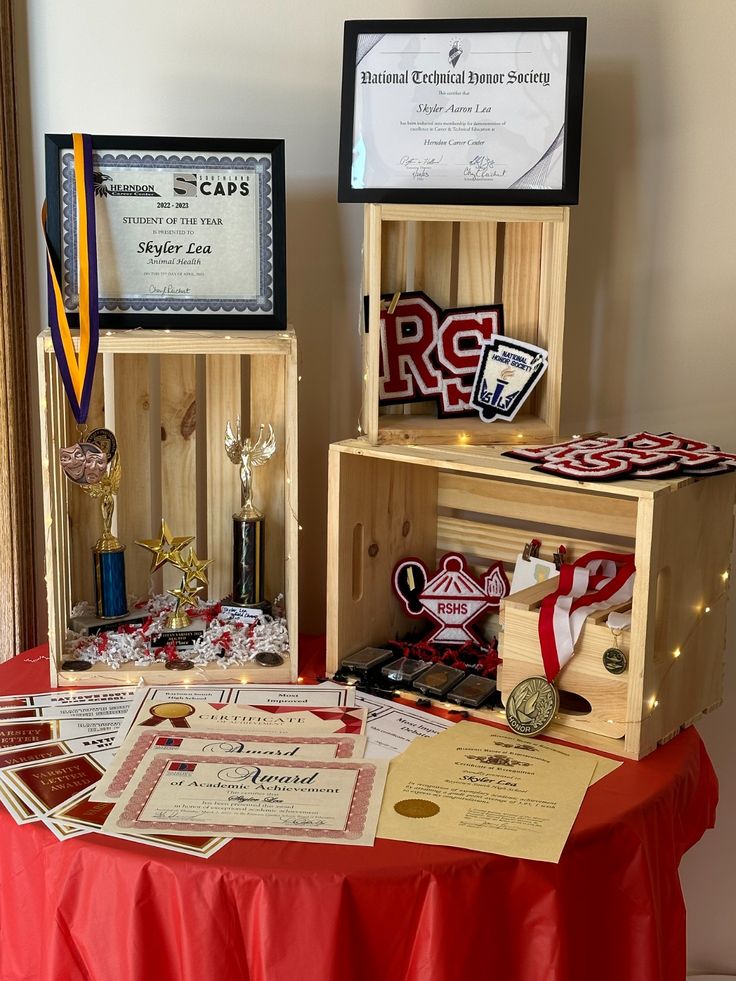 The wooden crates will draw the guests’ eyes immediately to those awards first. Then you can place trophies and other certificates on top of the wooden crates and the table itself.