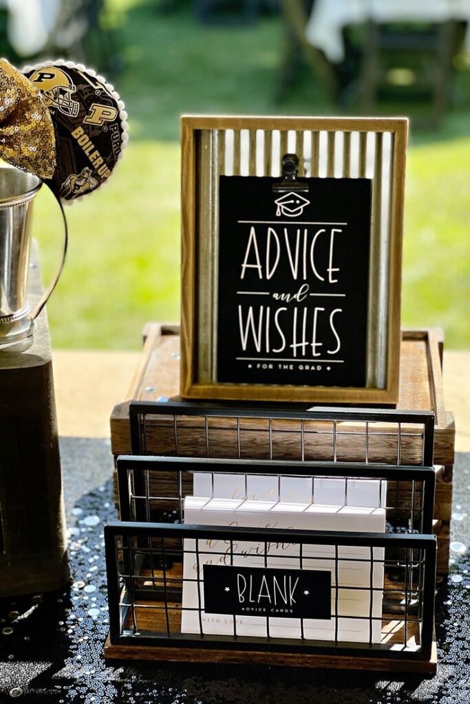 It’s a graduation party, which means you will be receiving lots of cards and gifts. So, creating a designated spot for them is an excellent idea.