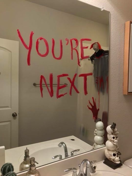 Dip your finger in some or use a paintbrush and write the words “you’re next”.
