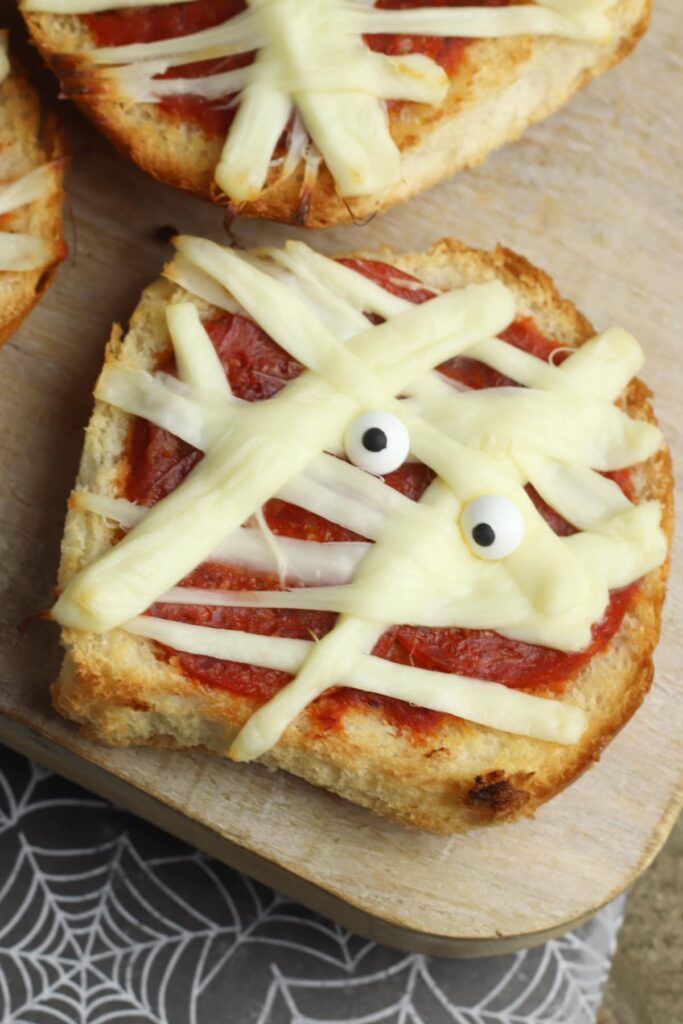 You can never go wrong with pizza, especially ones that look like a mummy for Halloween. This recipe calls for only 5 minutes of prep time and just 7 ingredients.