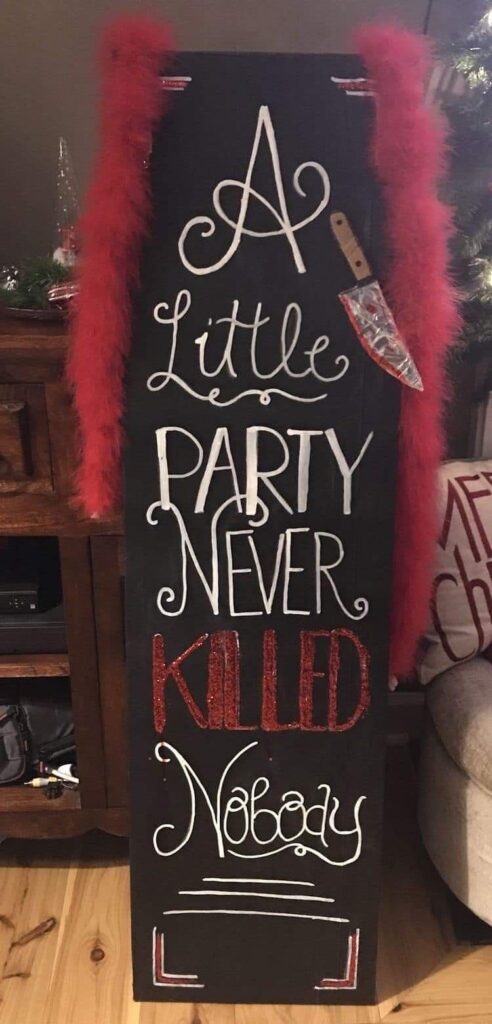 Get creative and DIY this stunning Scream-inspired board. You’ll need a wooden board, black spray paint, white paint, paintbrushes, and red paint.