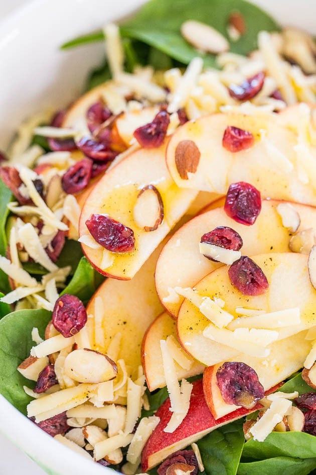 22. APPLE, WHITE CHEDDAR, AND SPINACH SALAD WITH HONEY APPLE CIDER VINAIGRETTÉ