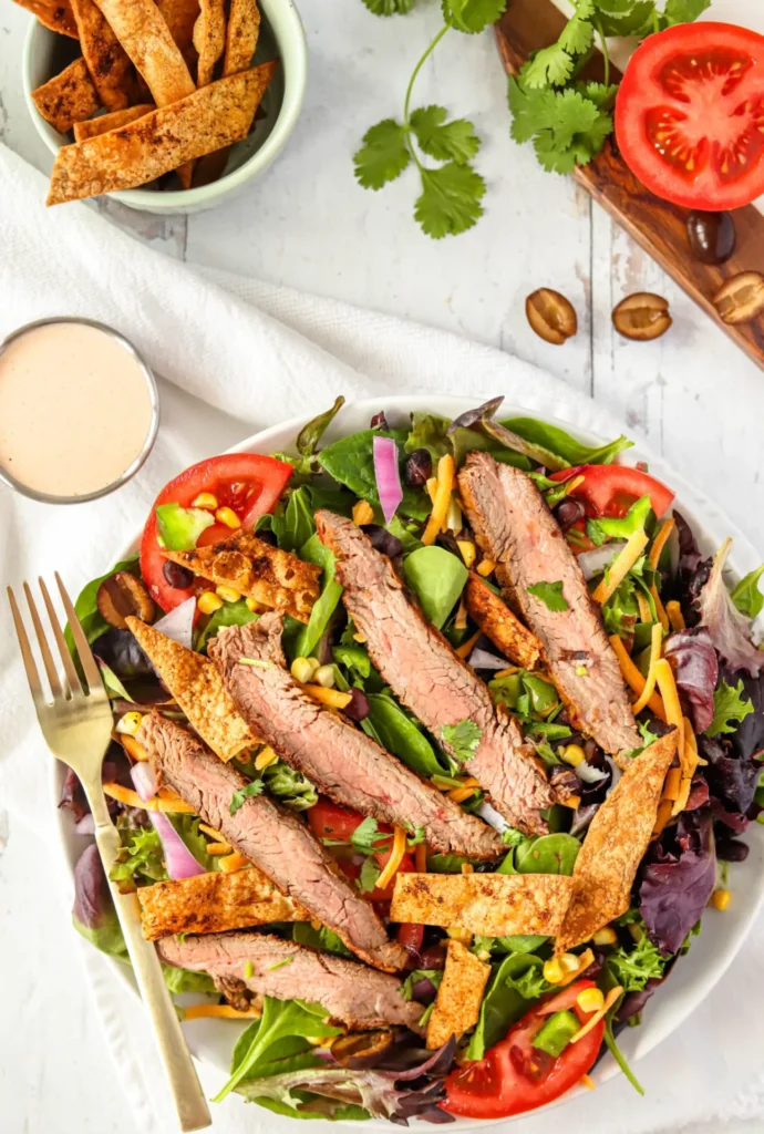 I can’t say that I’ve tried salad with steak before. I’ve gotta say though, it does look good. This salad is the one you should make when friends and family are over. They will love it!