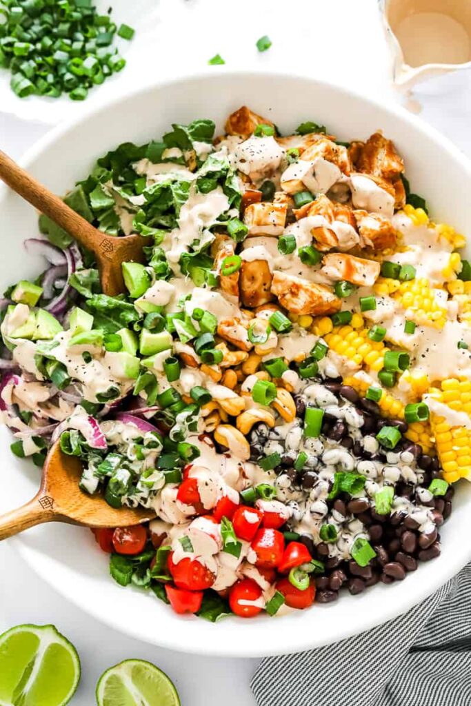 Who doesn’t love a good BBQ chicken salad? This recipe is packed with tasty veggies and creamy BBQ dressing, and is ready in only 5 minutes!