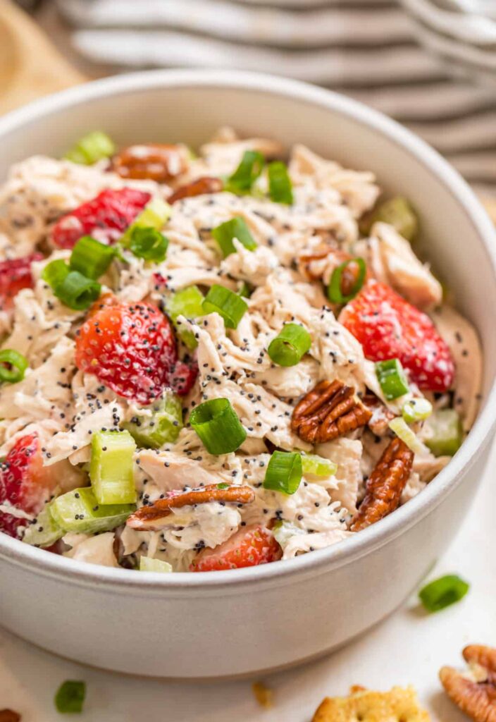Last but definitely not least, we have this amazing strawberry poppy seed pecan chicken salad that is for sure going to guarantee compliments from the whole family.