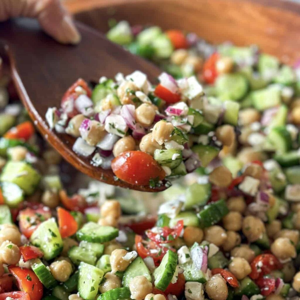 If you’ve never tried chickpea and cucumber salad, what are you doing?! It is one of my favorite healthy salad recipes. It is super easy to make and will keep you full all day long.