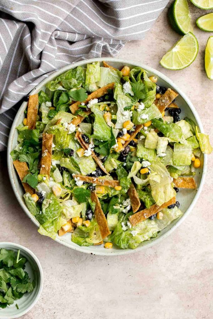 If you are looking for something fresh and flavorful, this Mexican salad is for you. It is made with black beans, corn, onions, peppers, tomatoes, and a delicious cilantro-lime dressing.