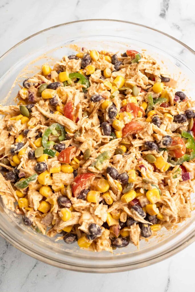 This southwest chicken salad isn’t just a regular chicken salad, though. It is extremely flavorful, full of spices, and great for meal prepping.