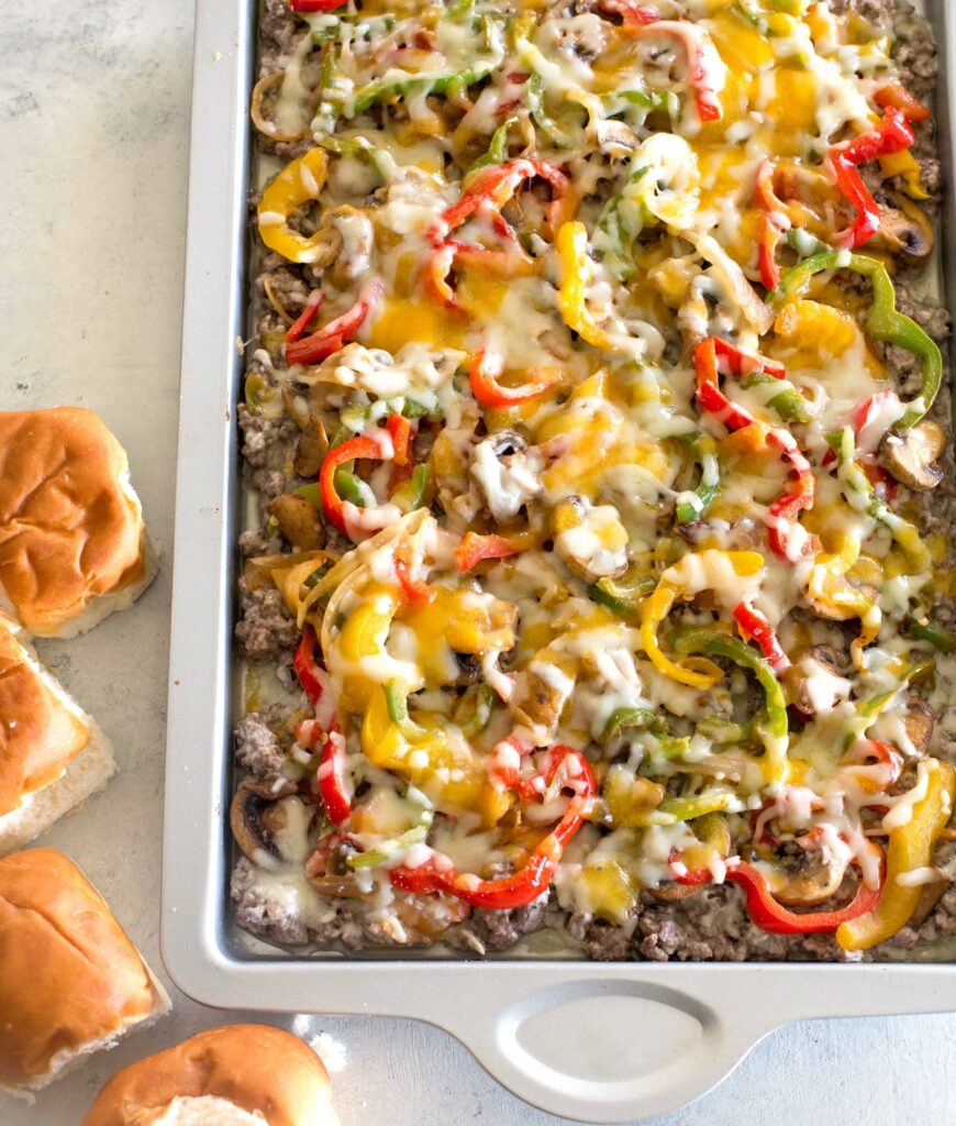 Dig into this tasty sheet pan Philly cheesesteak after a long day at work. It is made with simple ingredients you probably already have in your pantry and requires only 30 minutes of your time.
