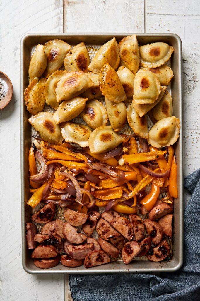 51. EASY PIEROGI SAUSAGE AND VEGGIE SHEET PAN DINNER