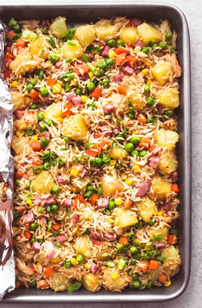 55. SHEET PAN TERIYAKI CHICKEN AND PINEAPPLE FRIED RICE