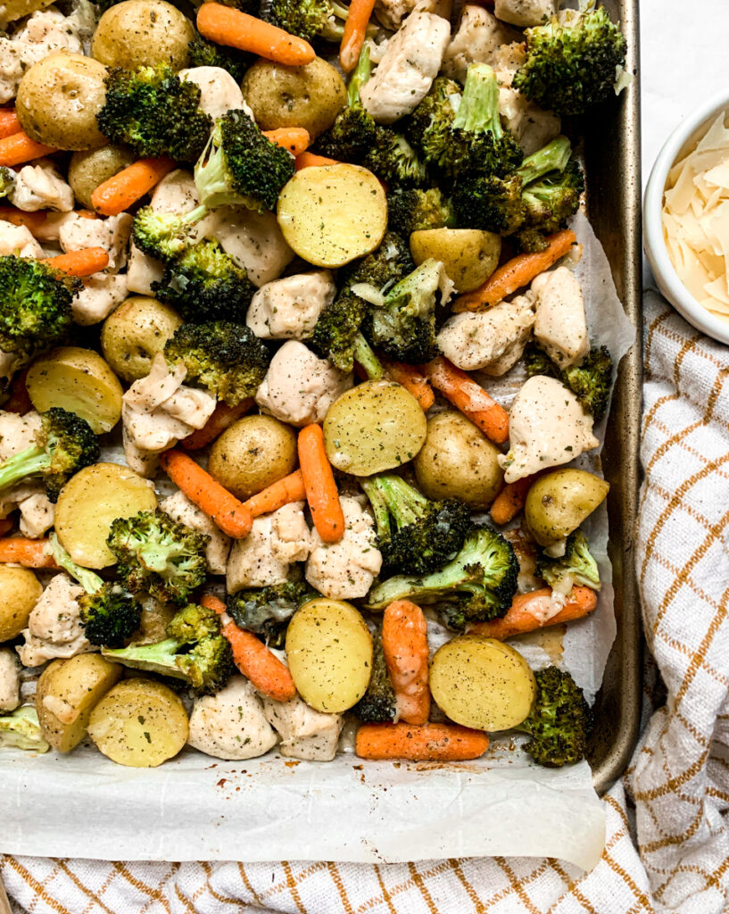 Who doesn’t love dinner in one pan? This parmesan-crusted sheet pan dinner is so good, you’ll put it on your weekly dinner rotation.