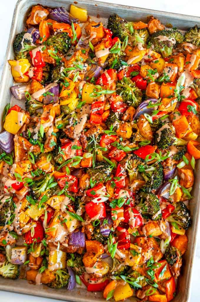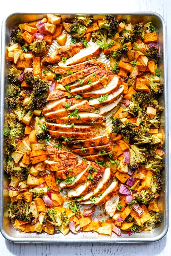 I’ve gathered 55 insanely tasty and healthy sheet pan recipes that are perfect for busy weeknights. From delicious chicken and potatoes to beef and broccoli and sheet pan fajitas, there is something in here for everyone. Most of these recipes will take less than an hour to make, so they are absolutely perfect for busy nights.