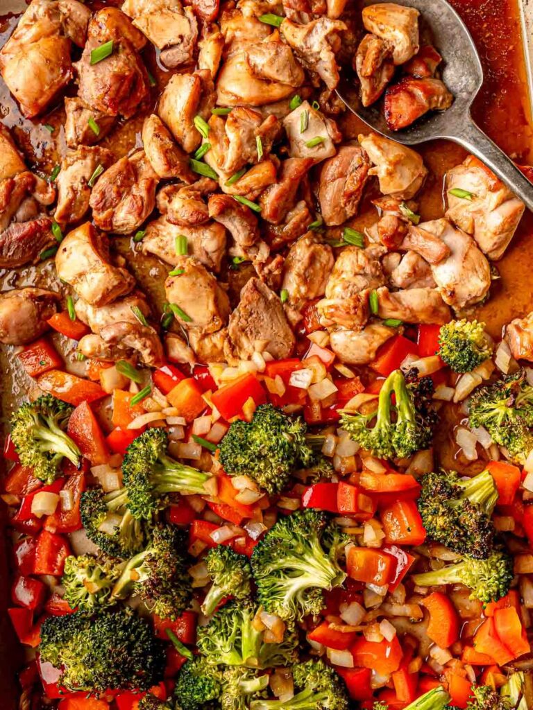 Looking for sheet pan recipes that can be made in just 30 minutes? Well, stop your search because this easy sesame chicken and vegetable recipe is exactly what you’re looking for!