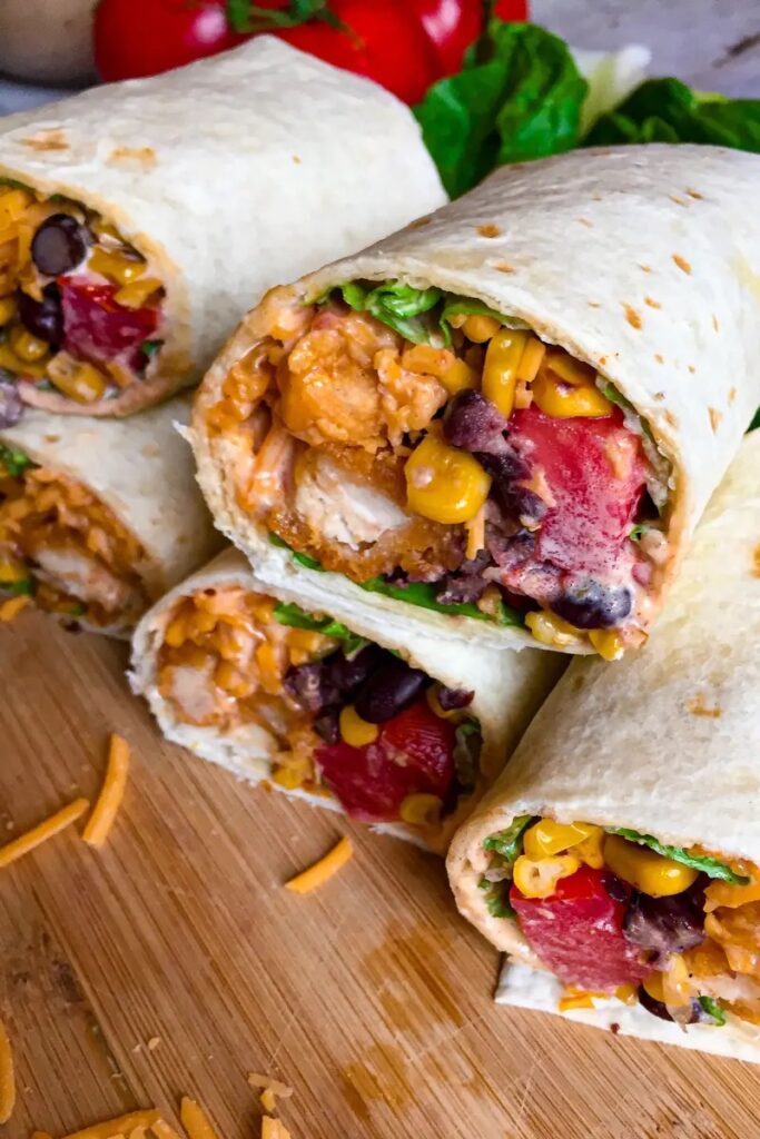 Last but definitely not least, we have this amazing Southwest chicken wrap recipe that is insanely good. It is made with chicken, veggies, black beans, and a tasty southwest dressing that is to die for.