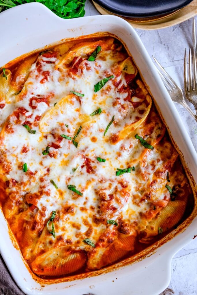 As the name says, stuffed shells are an extremely easy dinner recipe that everyone will love. The filling for these shells is creamy, smooth, and cheesy.